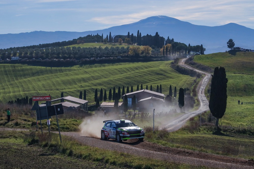 | RIMINI, 1 DICEMBRE 2025 - Angelo Pucci Grossi archivia la stagione sportiva 2025, con il fido Francesco Cardinali a leggere le note, conquistando l'ottava posizione assoluta (e settima tra gli iscritti al Campionato) al Rally del Brunello, appuntamento che – nel fine settimana appena trascorso – ha chiamato al confronto i protagonisti del Campionato Italiano Rally Terra, attesi all'ultimo e decisivo round tricolore. Il pilota riminese, portacolori di Scuderia Malatesta, è tornato ad impugnare il volante della Skoda Fabia RS schierata dal team Delta Rally e gommata MRF Tyres a distanza di otto mesi dall'ultima gara, pausa forzata dovuta ad inderogabili impegni lavorativi che lo hanno costretto a rivedere i programmi sportivi iniziali. Un po' di strada per recuperare i meccanismi di guida e l'affiatamento con la vettura, dopo il lungo stop, per poi alzare progressivamente il ritmo cercando, e in parte riuscendo, ad adeguarlo a quello degli scatenati battistrada, è stata la ricetta di Angelo Pucci per affrontare prove speciali di elevata caratura tecnica, mai affrontate in precedenza dal giovane driver romagnolo. "Siamo molto contenti di essere tornati a guidare dopo tanti mesi e di averlo fatto in una gara bella, con un ritmo al vertice assai sostenuto. – ha commentato Angelo Pucci Grossi all'arrivo – La nostra prestazione ci soddisfa, siamo rientrati subito in top ten e, a tratti, abbiamo fatto vedere anche qualcosa in più. Un ringraziamento speciale va al team Delta Rally, per averci messo a disposizione, come sempre, una macchina competitiva, e a tutte le persone che ci hanno seguito e supportato durante una stagione intricata e complessa, in cui non siamo riusciti a mantenere un andamento lineare. Nonostante questo, ci siamo tolti qualche bella soddisfazione e portiamo a casa tanta esperienza, maturata su chilometri di prove sempre belle e, al tempo stesso, molto impegnative. Siamo davvero felici di aver concluso la stagione con un buon risultato, che ci fa ben sperare per il futuro. Ora ci prendiamo un attimo di pausa per ricaricare le energie e fare tutte le valutazioni necessarie in vista della prossima stagione, con l'obiettivo di costruire un programma di rilievo". Nella foto (free copyright Amicorally) Angelo Pucci Grossi in azione. |