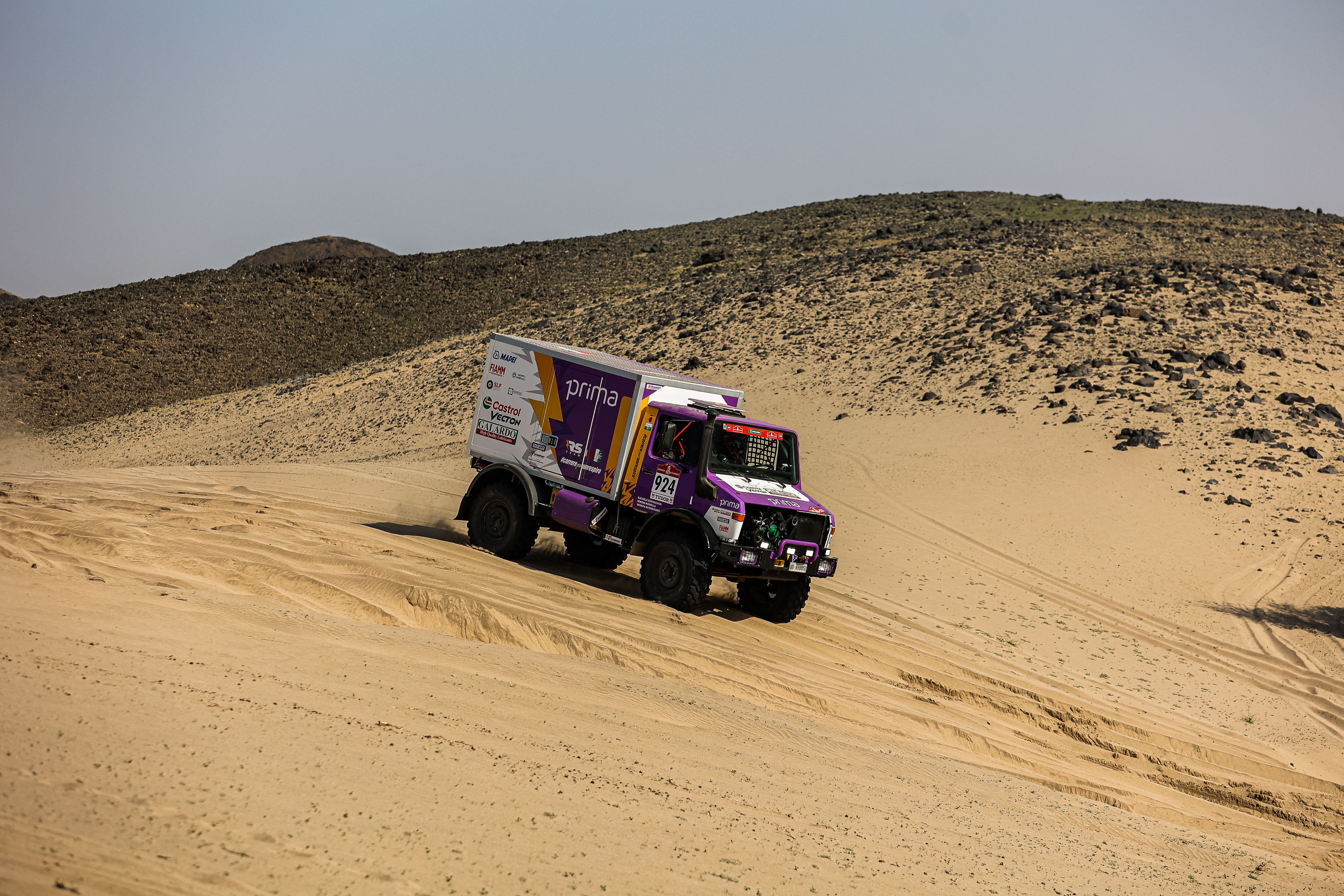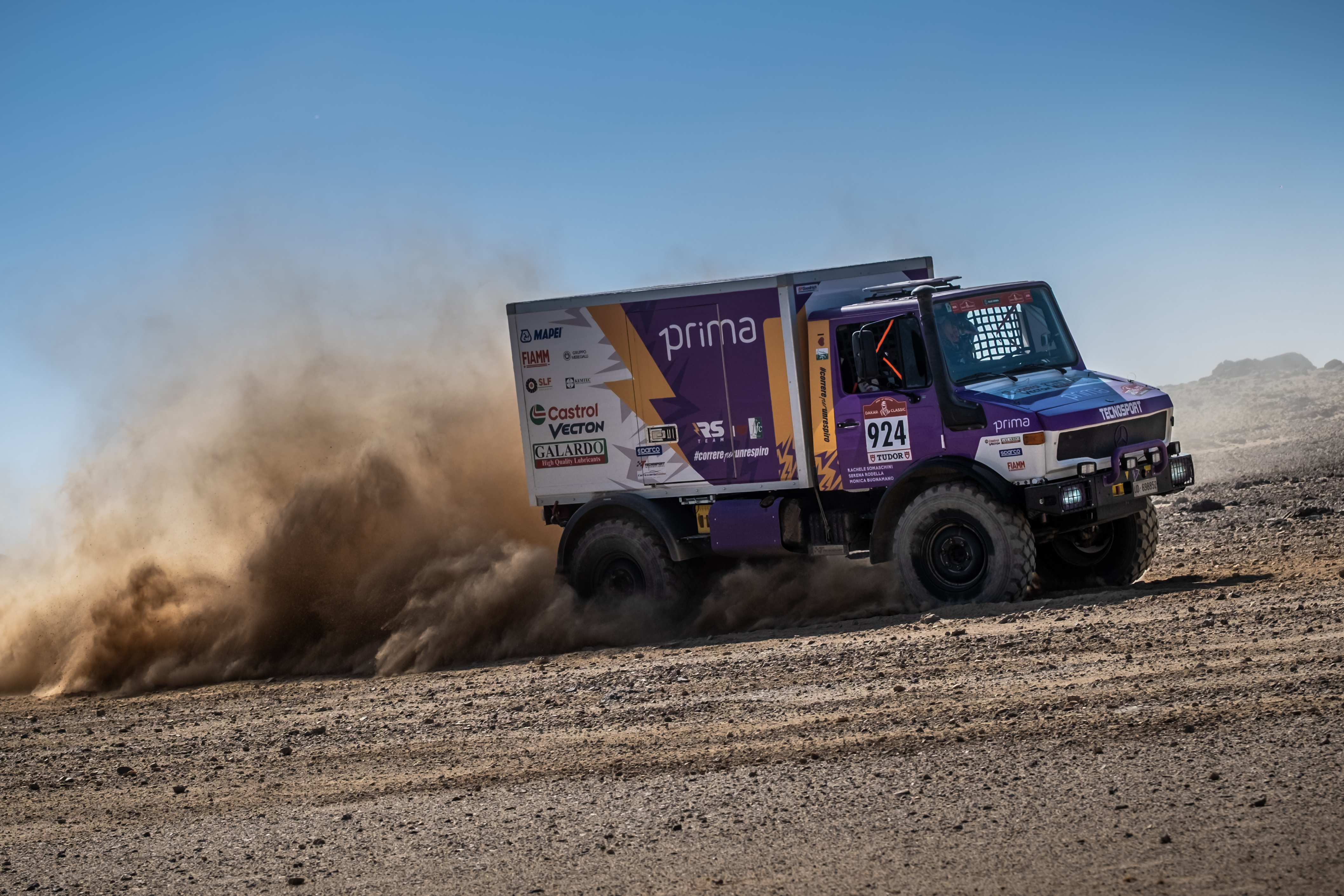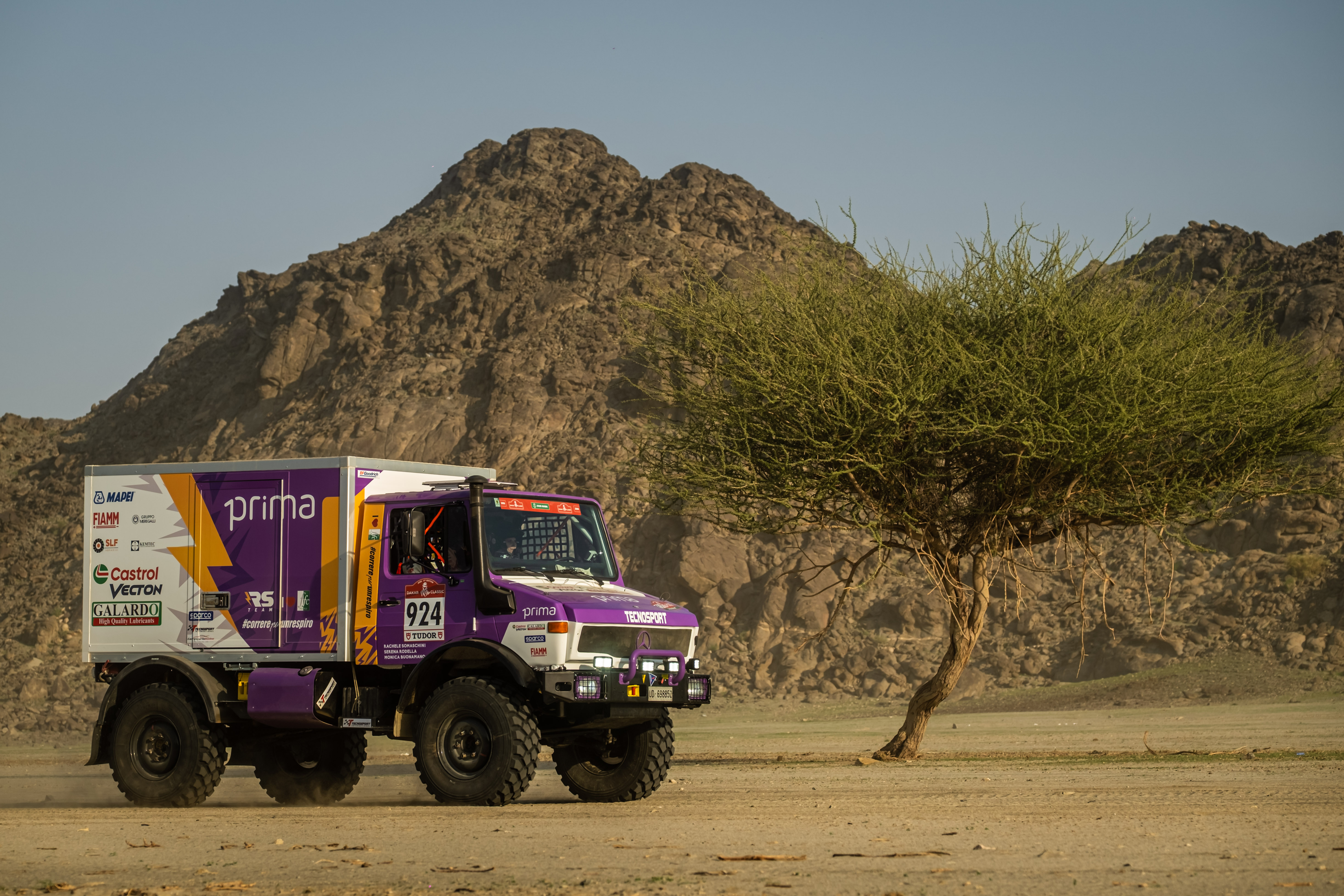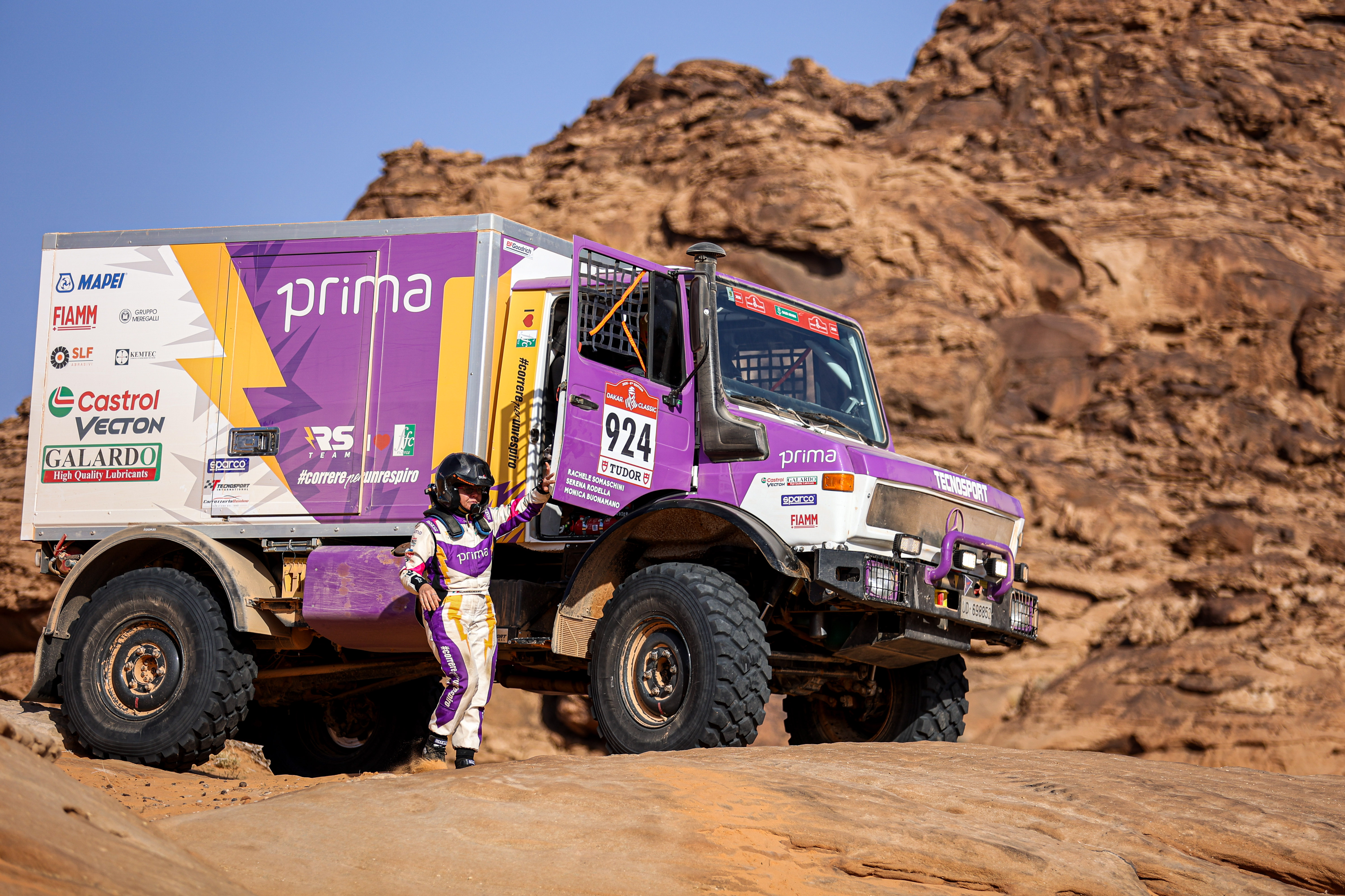 Troppo. Ho dovuto rispolverare tecniche non presenti nel mio DNA, come la doppietta, perché quel cambio senza doppietta non scalava. È stata una conoscenza reciproca, metro dopo metro, perché non avevamo fatto molti test. C'erano momenti di frustrazione, come dover aspettare un secondo tra una marcia e l'altra quando cambiavi il "carrello" del cambio, ma alla fine ci siamo sentite dei giganti a domare quel volante enorme e quel cambio con un'escursione esagerata. La prima settimana siamo sopravvissute, la seconda abbiamo iniziato a fare bene. Il terreno cambiava continuamente: prima roccia, poi canyon, poi sabbia dura, poi dune. Appena imparavi a guidare su un fondo, il giorno dopo cambiava tutto.