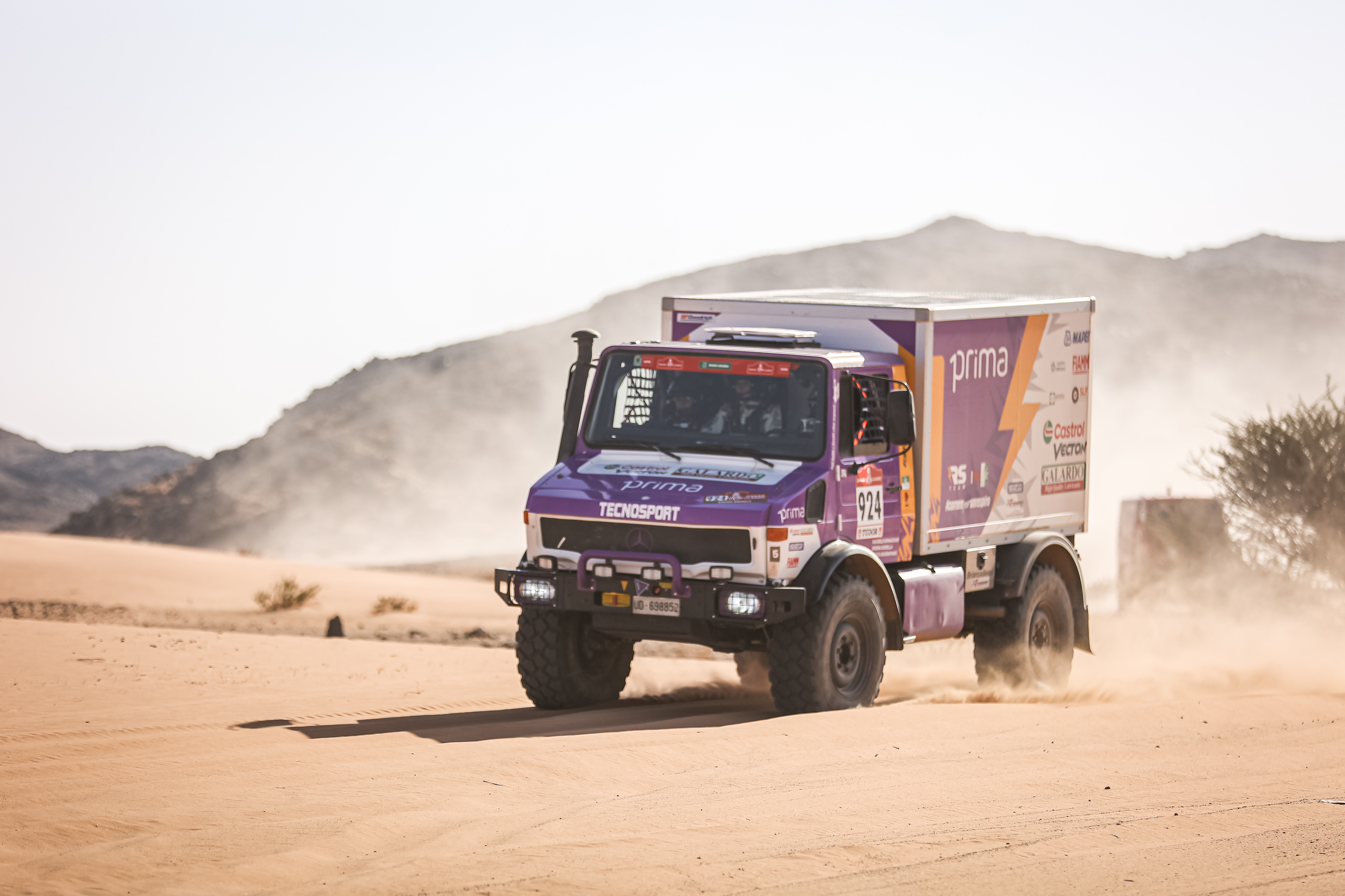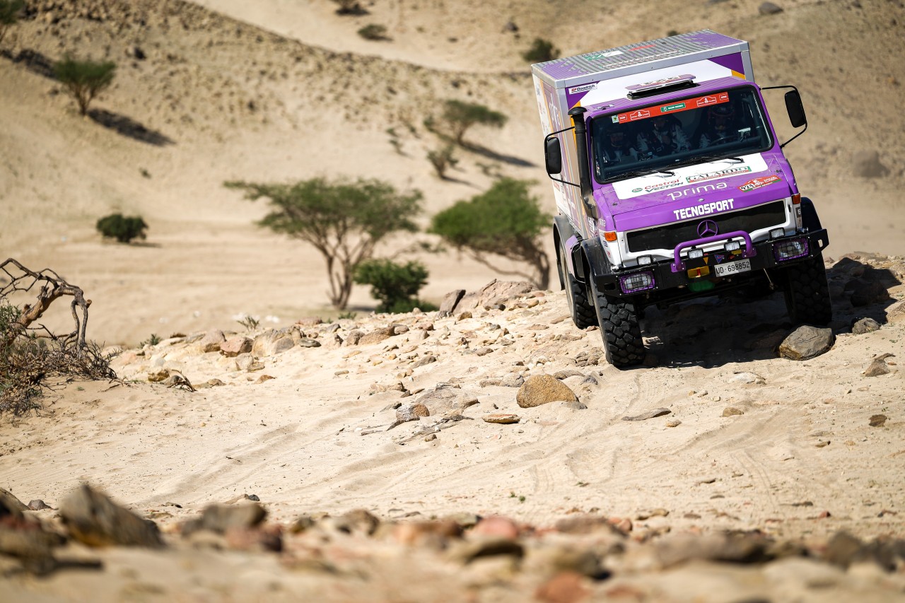 Sì, c'erano tre tipi di prove. Quelle di regolarità sono forse le più "noiose", anche se per il mezzo che avevamo tenere le medie era difficile. Essendo in categoria H1, dovevamo tenere le velocità delle vetture, cosa a volte impossibile per un camion, ma dovevamo adattarci. Poi c'erano le prove di navigazione, uguali a quelle della Dakar moderna ma con velocità adatte alle storiche. Devi seguire un CAP (una rotta in gradi) per sbloccare i waypoint; se non passi entro un raggio specifico (che può essere di 100, 50 o 200 metri), il punto non si sblocca e resti perso nel deserto. Infine c'erano i "Dune Test", prove sulle dune. Lì c'erano tre livelli di difficoltà, ma il nostro camion non aveva la potenza per affrontarle, quindi spesso dovevamo prendere la "chicken way" (la via alternativa più semplice), anche se poi le dune le trovavamo comunque nelle prove speciali e dovevamo farle per forza.