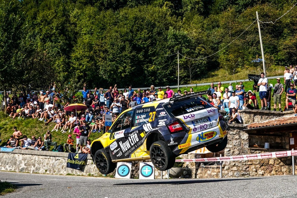 | SOLFERINO (MN), 24 SETTEMBRE 2025 - Alessandro Zorzi è pronto a ripartire dalla terra, dal Campionato Italiano Rally Terra. Il pilota mantovano – dopo aver affrontato il Rally 1000 Miglia lo scorso fine settimana – sarà di scena in Sardegna, da venerdì, per vivere l'agonismo del Rally del Vermentino. Lo farà impugnando ancora il volante della Skoda Fabia Rally2 Evo schierata da Erreffe Rally Team, vettura che condividerà con Roberta Franzoni con i colori di New Turbomark Rally Team. Una nuova esperienza, settima della stagione, per il driver di Solferino, reduce dalla diciottesima posizione assoluta conquistata nell'appuntamento bresciano, sempre su Skoda Fabia Rally2 Evo e con Fabio Berisonzi alle note. Una gara – il Rally 1000 Miglia – utile per proseguire il training su asfalto, affrontata rapportandosi con gli specialisti del fondo catramato. Il Rally del Vermentino sarà utile per dare continuità ad un trend che – al San Marino Rally, l'ultima gara di campionato disputata – lo ha elevato in decima posizione assoluta. Il "via" ufficiale della gara sarà dato venerdì. La giornata si aprirà con la Qualifying Stage e lo Shakedown (2,58 km su sterrato) a Berchidda, seguiti dalla cerimonia di partenza alle 14.00 e dai doppi passaggi sulla prova "Tula-Erula" (12,32 km, start alle 14.43 e 17.17), intervallati da un riordino a Erula. Al termine, rientro in assistenza (ore 18.33) e riordino notturno al Campo Sportivo (19.15). Sabato le sfide riprenderanno dalle 8.45 con un nuovo ingresso in assistenza e i due passaggi sulle speciali "Oschiri" (7,28 km) e "Terranova" (14,73 km), quest'ultima novità dell'edizione 2025 e ritorno di una classica. Tra i due giri previsti riordino e assistenza a Berchidda. Gran finale alle 15.30 con la cerimonia di premiazione. Nella foto (free copyright Leonelli) Alessandro Zorzi in azione al Rally 1000 Miglia. |