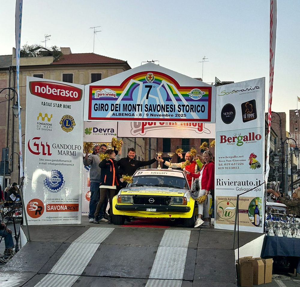 Lo scorso week end, invece, le auto storiche sono state protagoniste in Liguria al Giro dei Monti Savonesi. Tredicesima piazza assoluta e quarta di classe per Michele Andolina e Leo Alberto Moro su una Lancia Delta Integrale del 4° Raggruppamento. Ventunesimi assoluti e primi di classe, invece, Enzo Borini e Nicolò Ciancia Mercandino con la loro Opel Ascona 2.0. Subito dopo, nella generale, troviamo la Peugeot 205 Rallye di Andrea Perla e Domenico Saltarella che hanno ottenuto il secondo posto di classe.