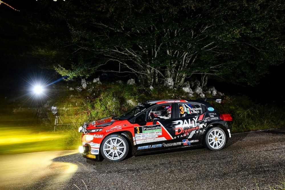 Il varesino su Citroen C3 sbarcato nel Trofeo Italiano Rally vince 2 prove su 3 e chiude la giornata con 10.8" di margine su Andreucci-Gallotti, i più veloci al calar del sole su Skoda Fabia; terza piazza per Pinzano-Turati. Nella Coppa ACI Sport Due Ruote Motrici svettano Grani-Grossi, nella 4WD Pini-Chiusole.