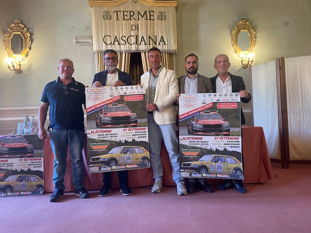 CASCIANA TERME LARI (Pisa), 04 settembre 2025 – E' stato presentato stamane, nel salone delle Terme di Casciana, il 43. Rally di Casciana Terme, pronto questo fine settimana ad infiammare il finale di stagione da con un plateau di "grandi firme" iscritte