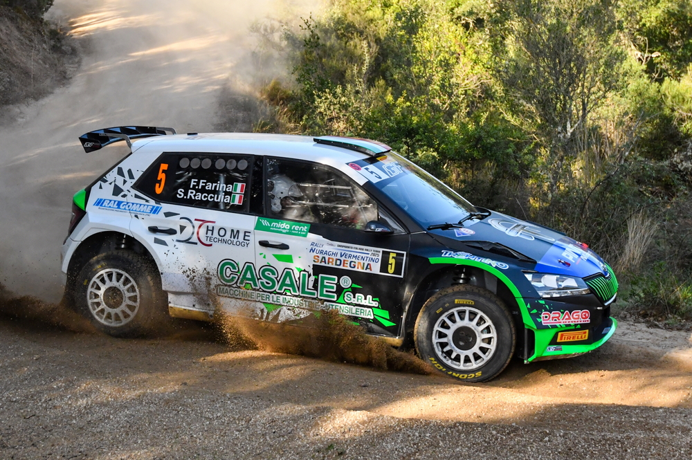 Il portacolori della Scuderia Pintarally Motorsport Fabio Farina con il copilota palermitano Sergio Raccuia ed in gara con la Skoda Fabia Evo conquista un ottimo 4° posto assoluto nel 22°Rally dei Nuraghi e del Vermentino in Sardegna, 5° appuntamento del Campionato Italiano Rally Terra.