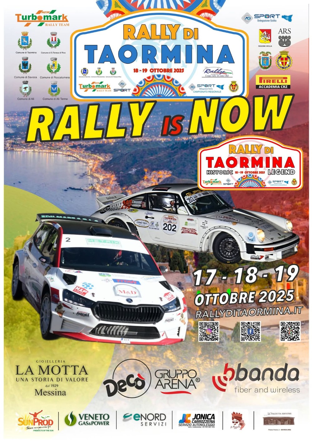 Taormina (ME), 09 settembre 2025. Come l'attesa cresce l'impazienza per il Rally di Taormina 2025, che quest'anno è accolto nuovamente nel cuore della perla dello Jonio in un periodo di alta stagione dal 17 al 19 ottobre. Venerdì 10 ottobre scade il termine ultimo per iscriversi alla competizione organizzata da New Turbomark Rally Team sul versante jonico della provincia di Messina.