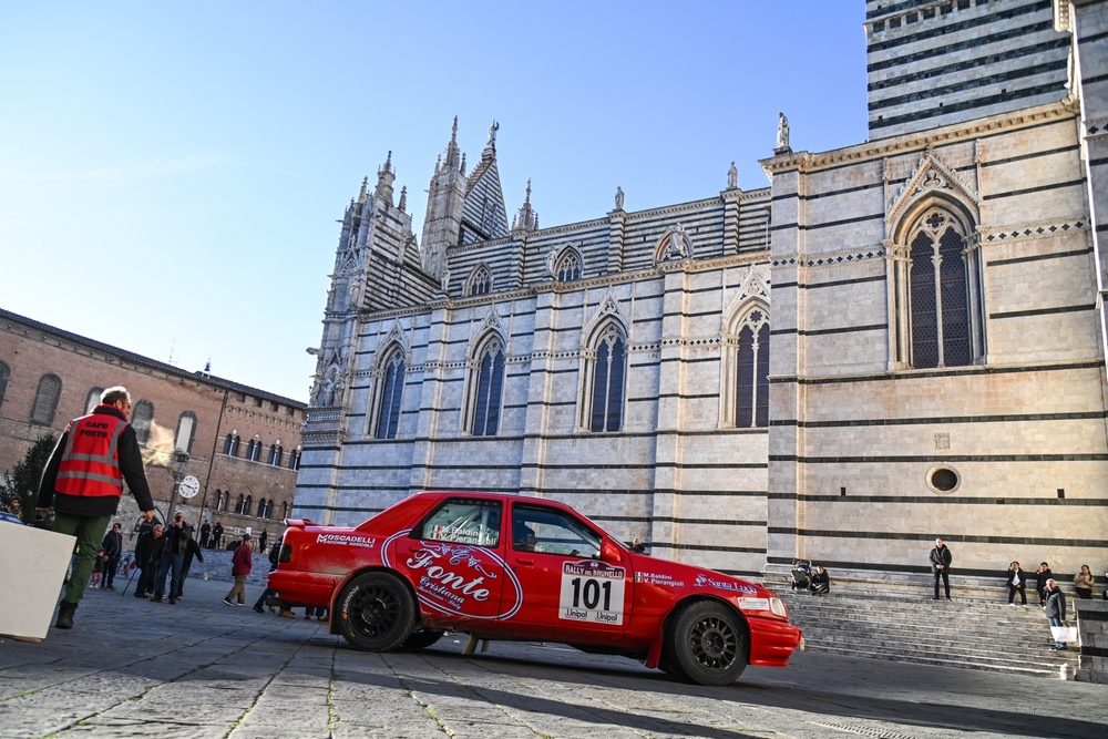 | MONTALCINO (SI) - Sono Benjamin Korhola e Valter Pierangioli, i primi protagonisti ai vertici – rispettivamente - delle classifiche moderna e storica proposte dal Rally del Brunello, ultimo round del Campionato Italiano Rally Terra e Campionato Italiano Rally Terra Storico. La gara, organizzata da Scuderia Etruria SCRL in joint con Deltamania Montalcino e con il supporto del Consorzio del Vino Brunello di Montalcino, ha coinvolto la provincia di Siena fin dalla giornata di ieri, con le operazioni di verifica ed oggi, con la partenza e la disputa di tre prove speciali, la prima – Radi – suddivisa in due distinte sessioni. Alle spalle del leader finlandese, compartecipe con il copilota Kristian Temonen del confronto moderno su Skoda Fabia RS, hanno concluso il primo giorno di gara Giovanni Trentin ed Alessandro Franco, in lotta per la vittoria del titolo su terra 2025. Dietro la Skoda di Trentin, anch'essi coinvolti dalla "volata" tricolore, stanno inseguendo Tommaso Ciuffi e Pietro Cigni, assecondati dalle modifiche effettuate alla loro Skoda Fabia RS, in sede di parco assistenza. Quarta posizione provvisoria per Christian Tiramani e Sauro Farnocchia, in gara su Skoda Fabia Rally2 Evo, vettura seguita dalla Skoda Fabia RS di Davide Pesavento e Lorenzo Mattucci, con il giovane driver alla prima esperienza sulla vettura. Nel confronto storico, a comandare è la Ford Sierra Cosworth di Valter Pierangioli: il pilota di Montalcini, con Michela Baldini alle note, ha rimontato lo svantaggio accusato nelle fasi iniziali dalla Lancia Delta Integrale di Mauro Sipsz e Giulia Paganoni, seconda forza al "via" del sabato conclusivo. Terza posizione per la Ford Escort RS di Loris Baldacci e Stefano Magnani, primo esemplare di 3° Raggruppamento seguito dalla Ford Escort RS di Andrea Tonelli e Roberto Debbi. A chiudere la top-five provvisoria è stata la Lancia Delta Integrale dei sammarinesi Michele Pellegrini e Umberto Bollini. Orazio Droandi e Oriella Tobaldo stanno invece prevalendo nel confronto valido per il Trofeo Abarth A112 Yokohama. Domani, in programma altre sette prove speciali, da disputarsi prima dell'arrivo conclusivo delle ore 15:08, a Montalcino, dove verrà ufficializzato il nome del campione del Tricolore Terra 2025. Nella foto (free Amicorally): Korhola in azione e la Ford Sierra Cosworth di Pierangioli in Piazza del Duomo a Siena. |