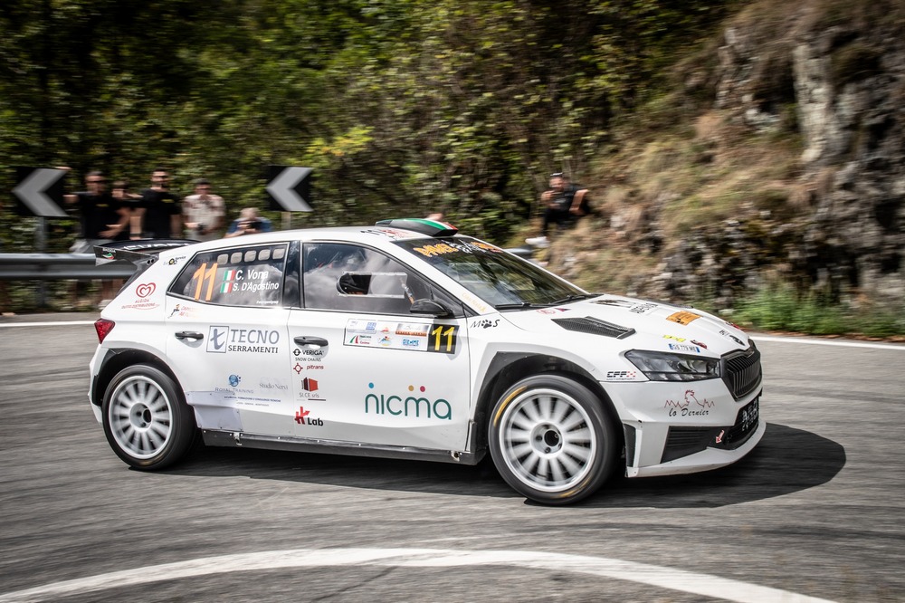 Punta poi ad un nuovo risultato di vertice il locale Luca Del Testa, con la prima versione della Fabia, reduce dal ritiro per incidente a Reggello lo scorso giugno ma mèmore anche del settimo posto in questa gara lo scorso anno, sempre in coppia con Simone Marchi.