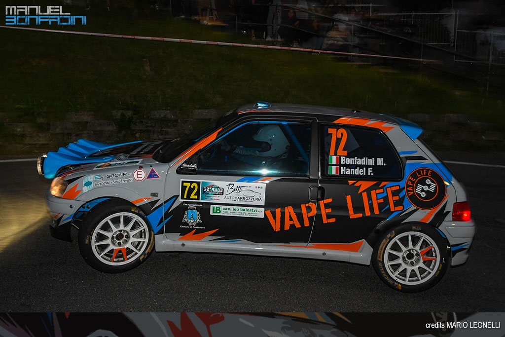 "Sulla speciale in notturna non abbiamo spinto perchè non è la mia comfort zone" – aggiunge Bonfadini – "ma alla Domenica abbiamo cercato di darci dentro, trovandoci particolarmente a nostro agio sulla Sparvo. Sulla seconda Trasserra siamo stati traditi da una curva a destra, affrontata forse con troppa velocità, e siamo andati a sbattere contro un terrapieno. Purtroppo ci siamo dovuti fermare ma, conti alla mano, credo che un ventesimo assoluto potevamo anche portarlo a casa, mettendo dietro vetture di ultima generazione come le Rally4 e le Rally5."