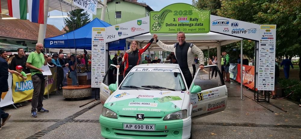 Bene, bravi, bis! Dopo la limpida vittoria di classe al Rally Zelezniki a giugno Alberto Mlakar e Cristina Delbello si sono ripetuti ottenendo una magnifica vittoria al 3°Rally Dolina Zelenega Zlata! L'affiatato duo ha rappresentato per la prima volta la Scuderia Gorizia Corse in questa gara valida per il campionato nazionale sloveno e la Central European Zone Historic. Epicentro della gara la città di Zalec, al via 55 equipaggi che tra venerdì 22 e sabato 23 agosto hanno affrontato 10 prove speciali per 88 chilometri cronometrati su 246 totali. Pronti via e già sulla breve ed unica prova del venerdì il duo ha ottenuto il miglior tempo tra i 16 concorrenti di Classe 6.Nella seconda e terza prova ancora due migliori tempi mentre nelle successive due il secondo posto di categoria con i piloti locali molto agguerriti per tentare di recuperare sullo "straniero". Dopo metà gara Mlakar-Delbello erano anche al 21° posto assoluto e 2°tra i tre italiani,poi con talento,organizzazione, voglia di vincere e con la precisa Peugeot 106 curata dai meccanici Fabio Grendene e Fabio Morgut hanno sbaragliato gli avversari con netti margini soprattutto sulle ultime tre prove (con il guizzo del 14°tempo assoluto sulla nona prova) e così hanno tagliato il traguardo al 19° posto assoluto, 1°tra gli italiani e ancora una volta 1° di Classe 6!