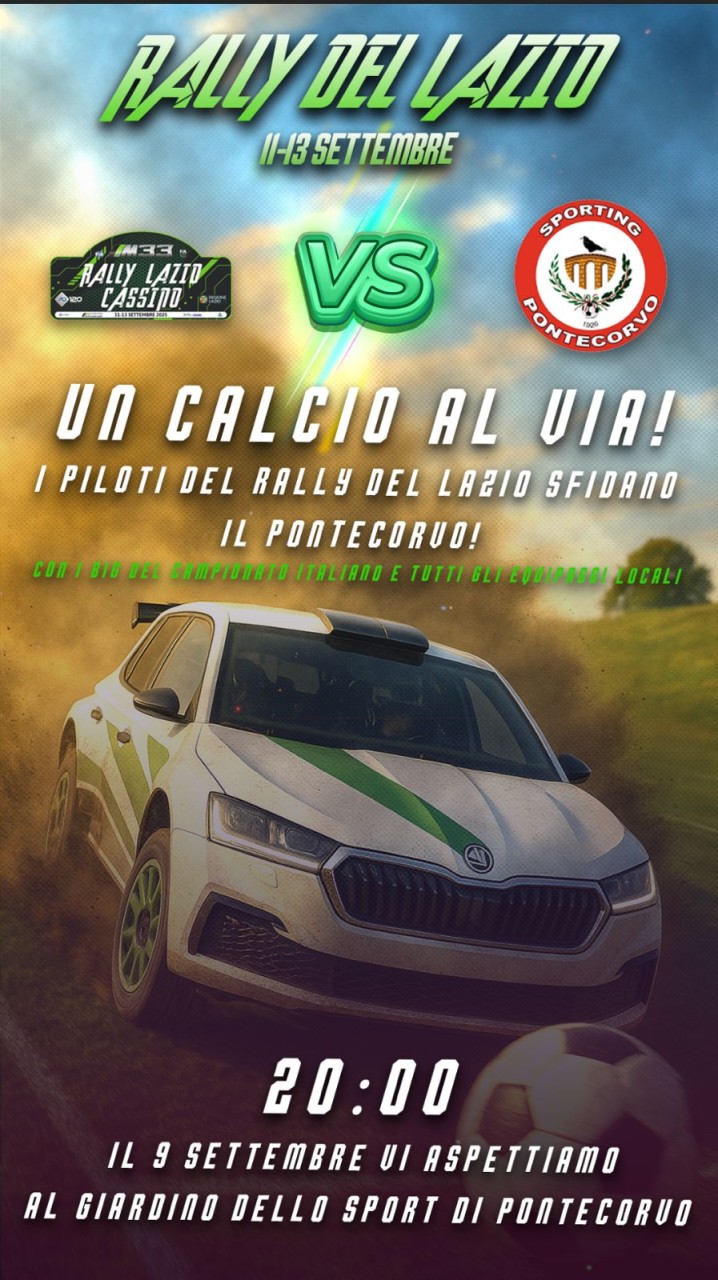 Cassino, 4 settembre 2025 – Sarà il calcio ad aprire il Rally del Lazio Cassino 2025. Martedì 9 settembre alle ore 20:00 il Giardino dello Sport di Pontecorvo ospiterà infatti "Un calcio al via", la partita che vedrà una selezione di piloti iscritti alla gara affrontare lo Sporting Pontecorvo 1926, squadra locale che milita in Seconda Categoria.L'evento è nato da un'idea di Max Rendina, promotore dell'evento organizzato da M33, grazie alla collaborazione del Referente ACI Sport Karting Lazio Roberto Sardelli, il Sindaco di Pontecorvo Anselmo Rotondo, il Delegato allo Sport Massimo Santamaria e il Presidente dello Sporting Pontecorvo 1926 Mario del Signore. L'intento principale è quello di unire sport e territorio, in pieno spirito con i valori del Rally del Lazio Cassino. Questa partita show vuole regalare al pubblico una serata di festa alla vigilia della sfida tricolore, creando un legame diretto tra i protagonisti del Campionato Italiano Assoluto Rally Sparco e la comunità locale rappresentata non solo dallo Sporting Pontecorvo 1926 ma anche da alcuni piloti locali.
