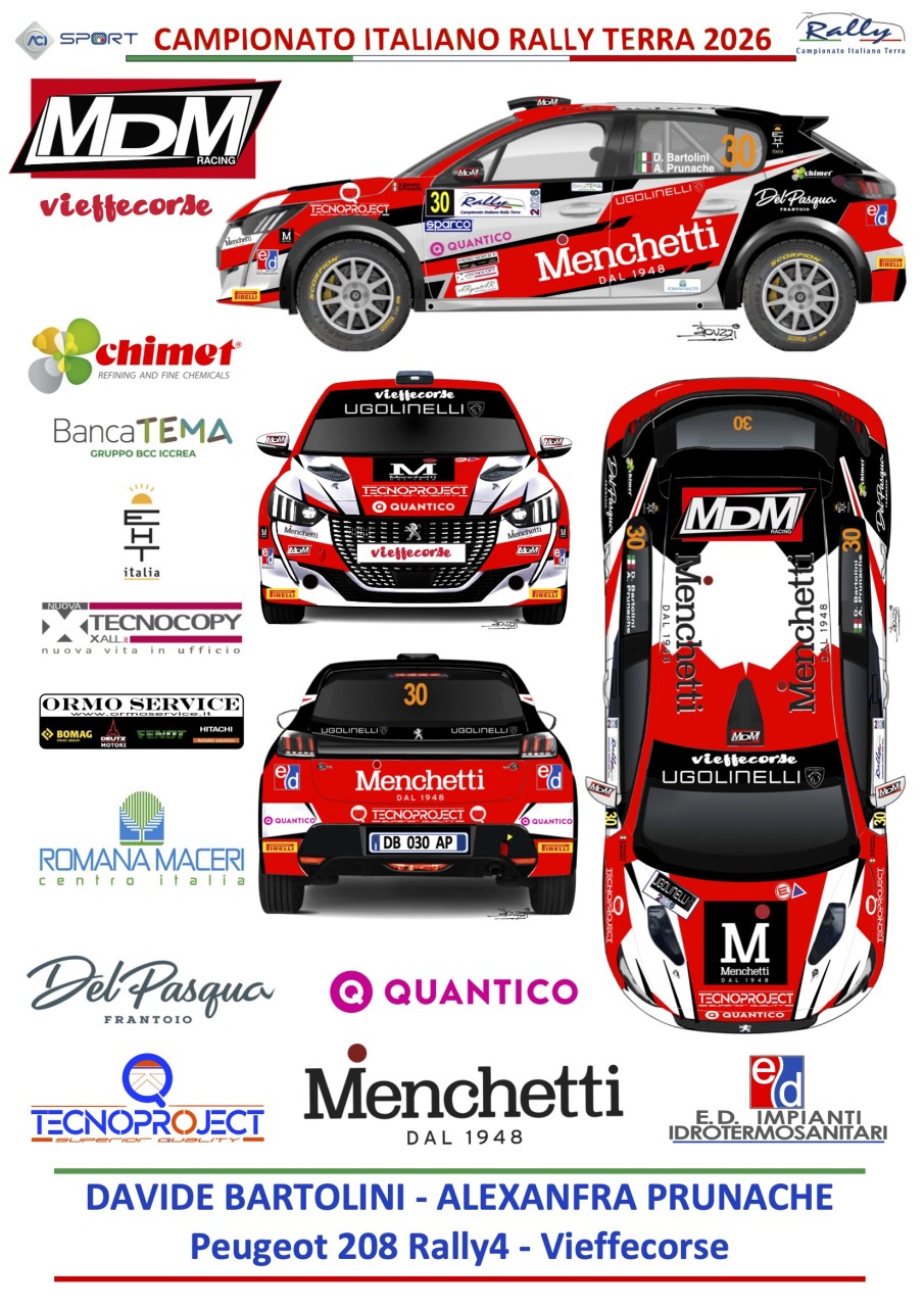 "Affrontiamo questa quinta stagione con il giusto equilibrio tra umiltà e determinazione," commenta Davide Bartolini. "Il risultato dello scorso anno ci ha dato la certezza che la direzione intrapresa è quella corretta e che abbiamo il potenziale per confrontarci con i migliori della categoria. Non vogliamo fare proclami, ma lavoreremo con la massima costanza per essere lì, pronti a giocarci le nostre carte in ogni singola prova speciale. La nostra soddisfazione più grande resta comunque vedere la MDM Racing crescere come punto di riferimento per il territorio, per l'etica d'impresa e per la sicurezza stradale. Un traguardo così ambizioso non sarebbe immaginabile senza il supporto dei nostri partner e dello staff della scuderia, che rappresentano il vero motore dietro le quinte del nostro progetto sportivo e sociale."