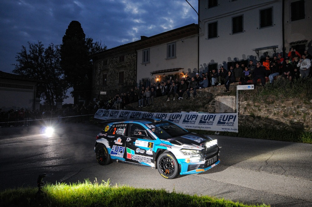 | Il pilota di Lamporecchio, in gara con il debuttante Nicolangelo Lettieri, conquista la terza posizione assoluta sulla Skoda Fabia RS di MM Motorsport. | |