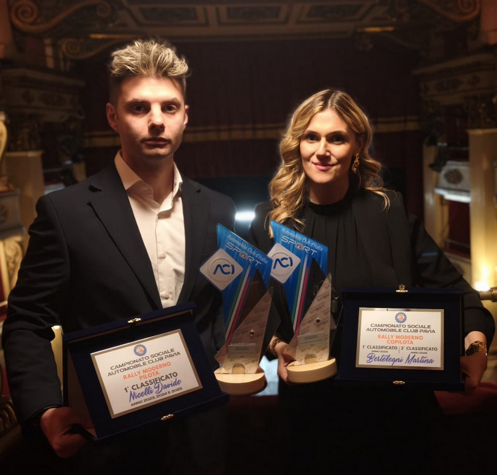 Una cornice d'eccezione, quella del prestigioso Teatro Valentino Garavani di Voghera, ha ospitato nei giorni scorsi una serata interamente dedicata all'eccellenza del motorsport regionale e provinciale. L'evento, organizzato per celebrare i protagonisti del Campionato Regionale Lombardia 2025 e del Campionato Sociale ACI Pavia per il triennio 2023-2024-2025, ha visto tra i grandi premiati il pilota di Stradella Davide Nicelli e la sua navigatrice, la vogherese "doc" Martina Bertelegni.