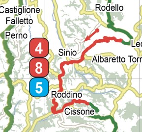 · La prova è stata effettuata, con percorso leggermente differente nella parte iniziale, nelle edizioni 2020 e 2021 del Rally di Alba e si presume superi la media degli 80 km/h.