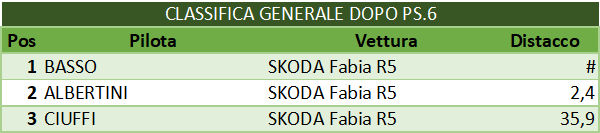 CLASSIFICA PROVVISORIA CAMPIONATO CIR: 1.Basso (111 punti) 2.Andolfi (75,5 punti) 3.Crugnola (67,5 punti) 4.Albertini (66 punti)