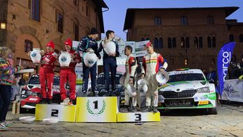 Alberto Battistolli, autore di una prestazione maiuscola sugli sterrati toscani, al comando del rally con 3"4 su Paolo Andreucci. E già questa potrebbe essere una bella sfida per la vittoria del 12° Liburna Terra. Per il Campionato Itaiano Rally Terra 2021 però è incentrata sulla sfida fra il secondo e terzo assoluto e cioè Paolo Andreucci e Bruno Bulacia, distanziati fra loro di 11"3: Paolo Andreucci infatti per vincere il titolo gli basta arrivare secondo dietro Battistolli. Una posizione peggiore, come il terzo posto, farebbe vincere il titolo ad Umberto Scandola che farà da spettatore a quest'ultima prova.