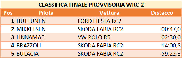 Jari Huttunen (Ford Fiesta Rally2): 10:34.029 "Sono contento, ma non ho fatto dei buoni tempi. Avrò molto da lavorare per l'anno prossimo" Vince la gara del WRC-2