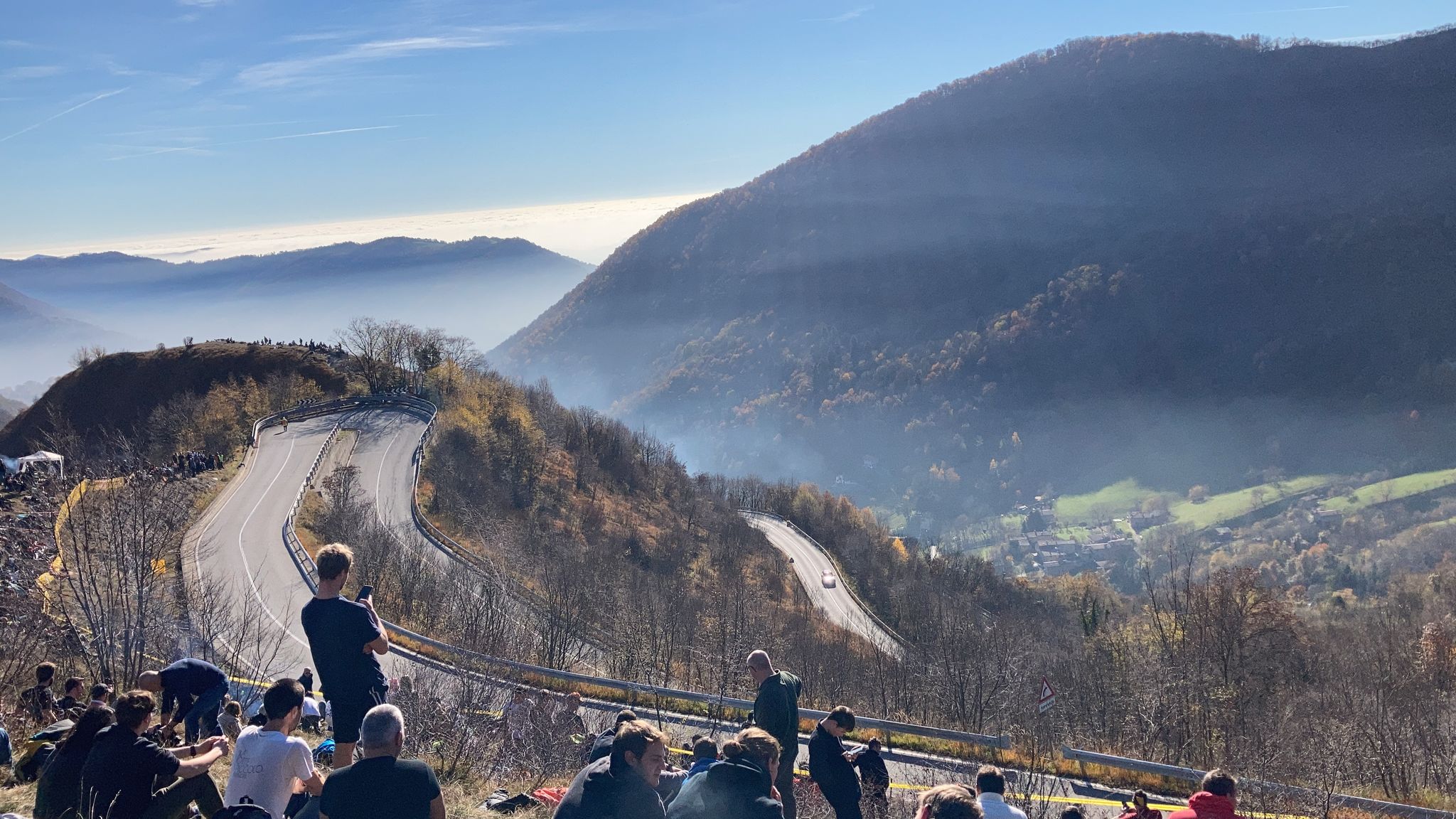 Secondo passaggio sulla prova speciale di San Fermo. Il primo passaggio è stato vinto da Thierry Neuville in 9:15.4