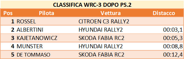 Scelta più varia fra le WRC-2 dove solo Mikkelsen e Linnamae sono usciti con 5 gomme hard, Bulacia 2 hard e 4 soft, Gryazin e Brazzoli con 3 hard e 3 soft