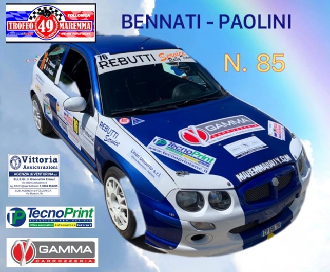 Parteciperanno al Rally con il N. 85 l'equipaggio BENNATI – PAOLINI con una Rover MG ZR 105 N1 seguita ed assistita da REBUTTI Service Rally Team.