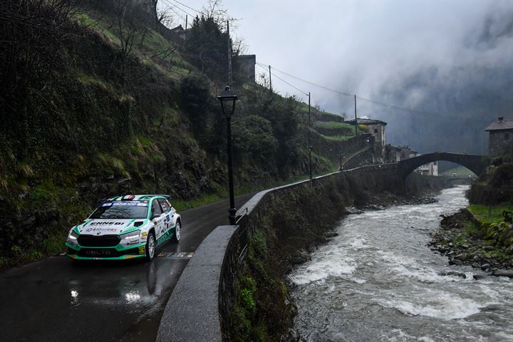 L'equipaggio su Skoda Fabia RS è leader dopo le prime sei prove del Campionato Italiano Assoluto Rally Sparco. Seguono Crugnola-Ometto (Citroen C3) e Avbelj-Andrejka (Skoda Fabia). Condizioni eroiche nella prima giornata, con il guado che ha fermato diversi protagonisti. Domeninca altre 3 prove speciali