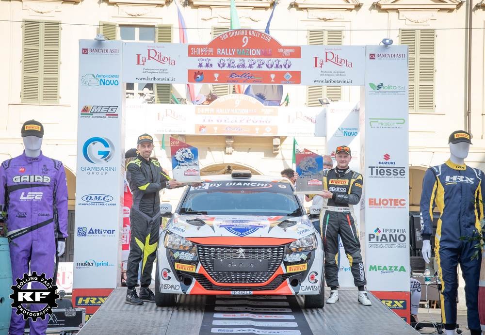 Vincenzo Torchio ed Alessandro Mattioda, concludono le fatiche sulle strade astigiane, ottenendo la diciannovesima posizione assoluta, nonché la quarta di classe Rally4, alla guida della Peugeot 208 Rally4 con i colori del team torinese By Bianchi Rally Team . Altro gradito riconoscimento, è la vittoria nel trofeo dedicato a Paolo Guasco.