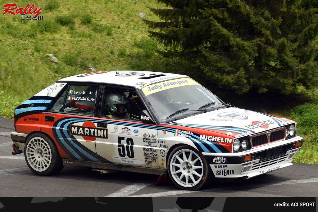 Decima piazza assoluta per Giovanni Dezulian, alle note Mattias Conci sulla splendida Lancia Delta Integrale 16 valvole gruppo A in livrea Martini, che ha completato il suo bottino con una buona quinta piazza in quarto raggruppamento ed in classe A-J2/>2000 tra i big del CIRAS.