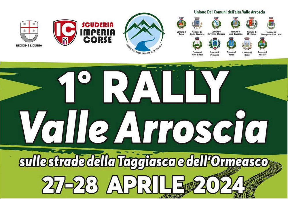 Malgrado manchi ancora parecchio alla data di svolgimento, c'è un interesse sempre più crescente attorno al "1° Rally della Valle Arroscia - sulle strade dell'Ormeasco e della Taggiasca", in calendario il 27 e 28 aprile prossimi con l'organizzazione della Scuderia Imperia Corse, l'importante patrocinio della Regione Liguria e la fattiva collaborazione dell'Unione dei Comuni – Armo, Aquila d'Arroscia, Borghetto d'Arroscia, Cosio d'Arroscia, Mendatica, Montegrosso Pian Latte, Pieve di Teco, Pornassio, Ranzo, Rezzo e Vessalico – dell'Alta Valle Arroscia, undici municipi intenzionati a promuovere, attraverso una manifestazione automobilistico – sportiva, il loro territorio e a fare ulteriormente conoscere quei prodotti – il vino rosso Ormeasco, l'olio EVO derivato dalle olive taggiasche e il famoso Aglio di Vessalico – che da tempo sono già apprezzati anche fuori dai confini liguri.