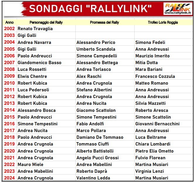 Siamo giunti anche quest'anno, al nostro tradizionale appuntamento con il sondaggio sul "Personaggio del Rally" giunto alla sua 24esima edizione.