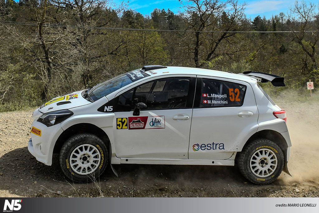 Luca Maspoli, alle note Marco Menchini, ha vissuto un Val d'Orcia complicato con la Toyota Yaris N5 di Paolo Porro, ereditata da G. Car Sport e finita in extremis, a poche ore dal via.