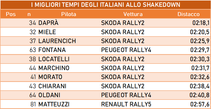 Ricordiamo inoltre che c'è anche un navigatore italiano, Mattia Pastorino, che corre come sempre con il monegasco Jean Paul Palmero.