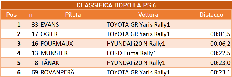 Classifiche dopo il primo giro di prove speciali