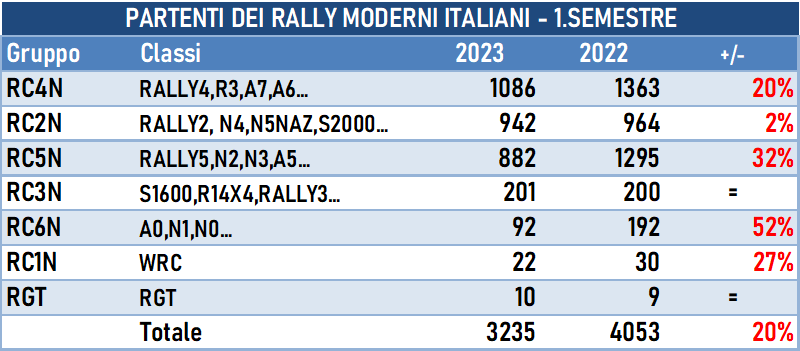 Statistiche Partenti rally moderni in Italia - 1. Semestre 2023