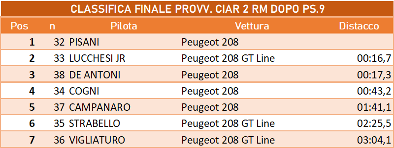 CIAR 2 RM: Pisani ha 11,4 sec su Lucchesi e 14,4 su De Antoni