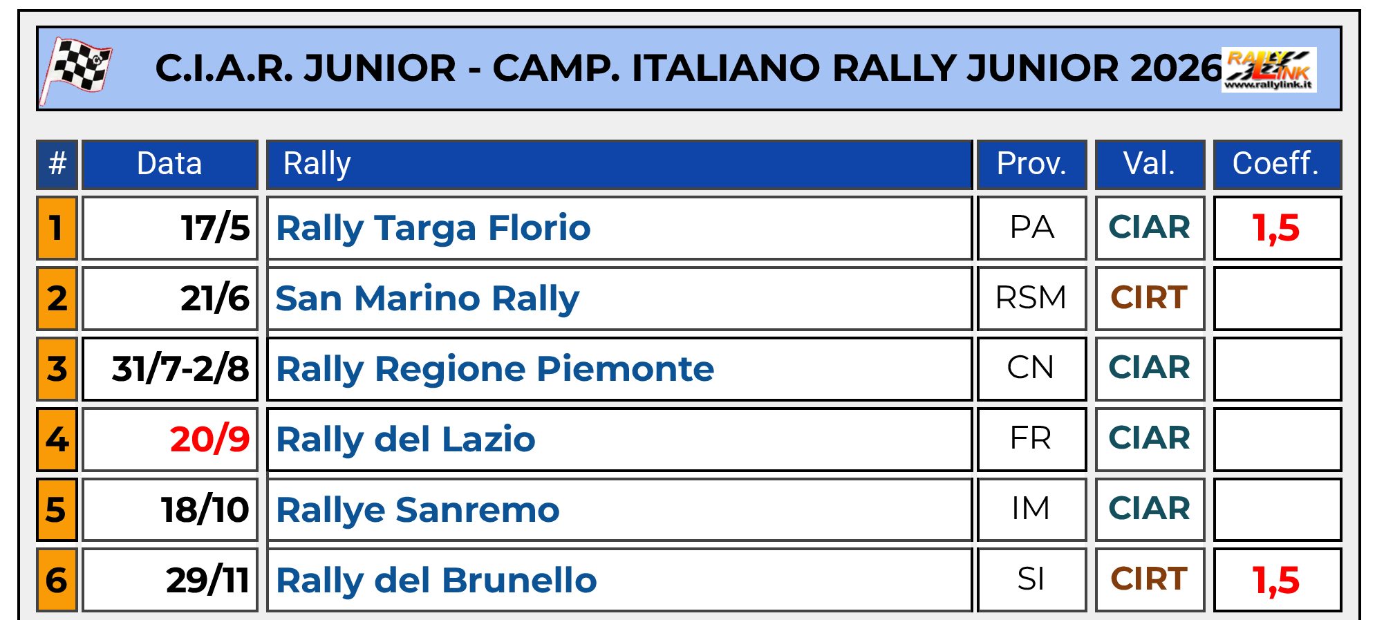 - Vetture del programma ACI Team Italia in mono-gestione di tipologia Rally 4 gestite in gara da Motorsport Italia Spa.