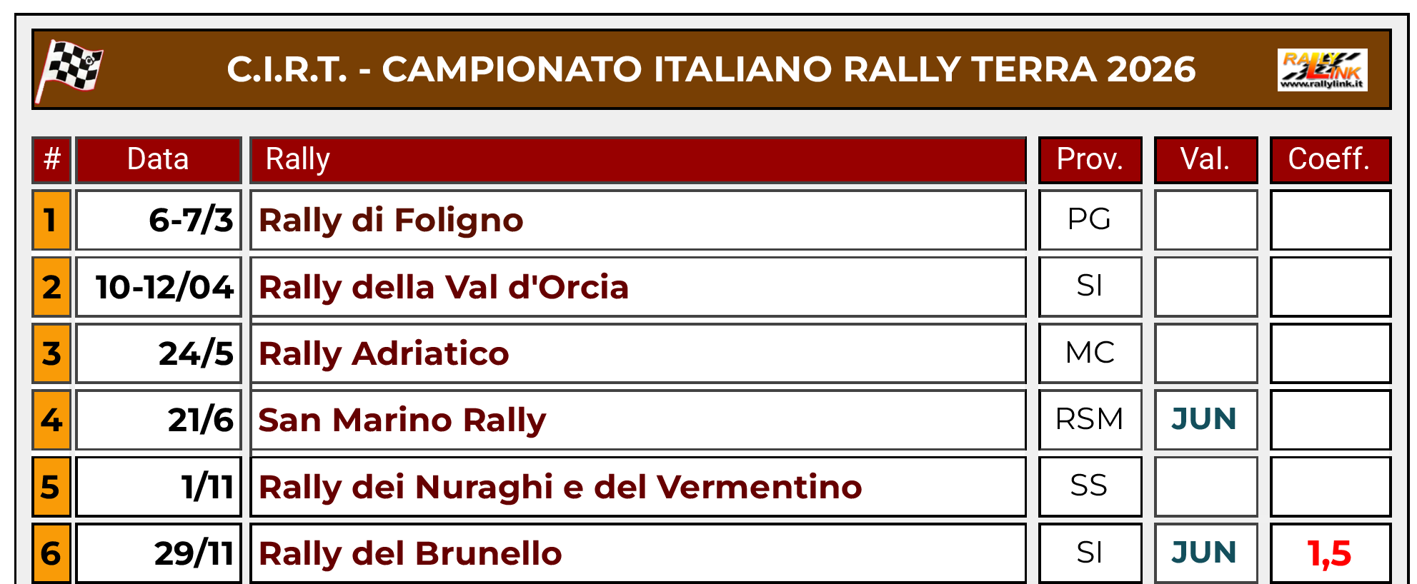 - Concorreranno all’aggiudicazione del Campionato le sole vetture Rally3