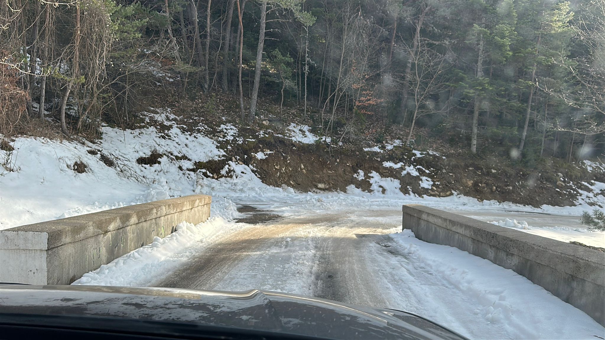 "Temperature molto basse oggi. Nella prima parte i tagli sono abbastanza puliti, ghiaiosi ma asciutti. Dopo circa 5 km il fondo cambia nettamente, con presenza di ghiaccio, acqua e fango, e tratti con molto ghiaccio. Intorno al km 9 è presente un salto da affrontare "dritto". Gli ultimi 2 km sono in discesa, con ghiaccio e una serie di tornanti."