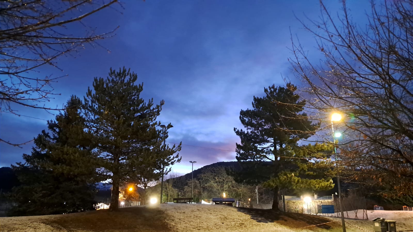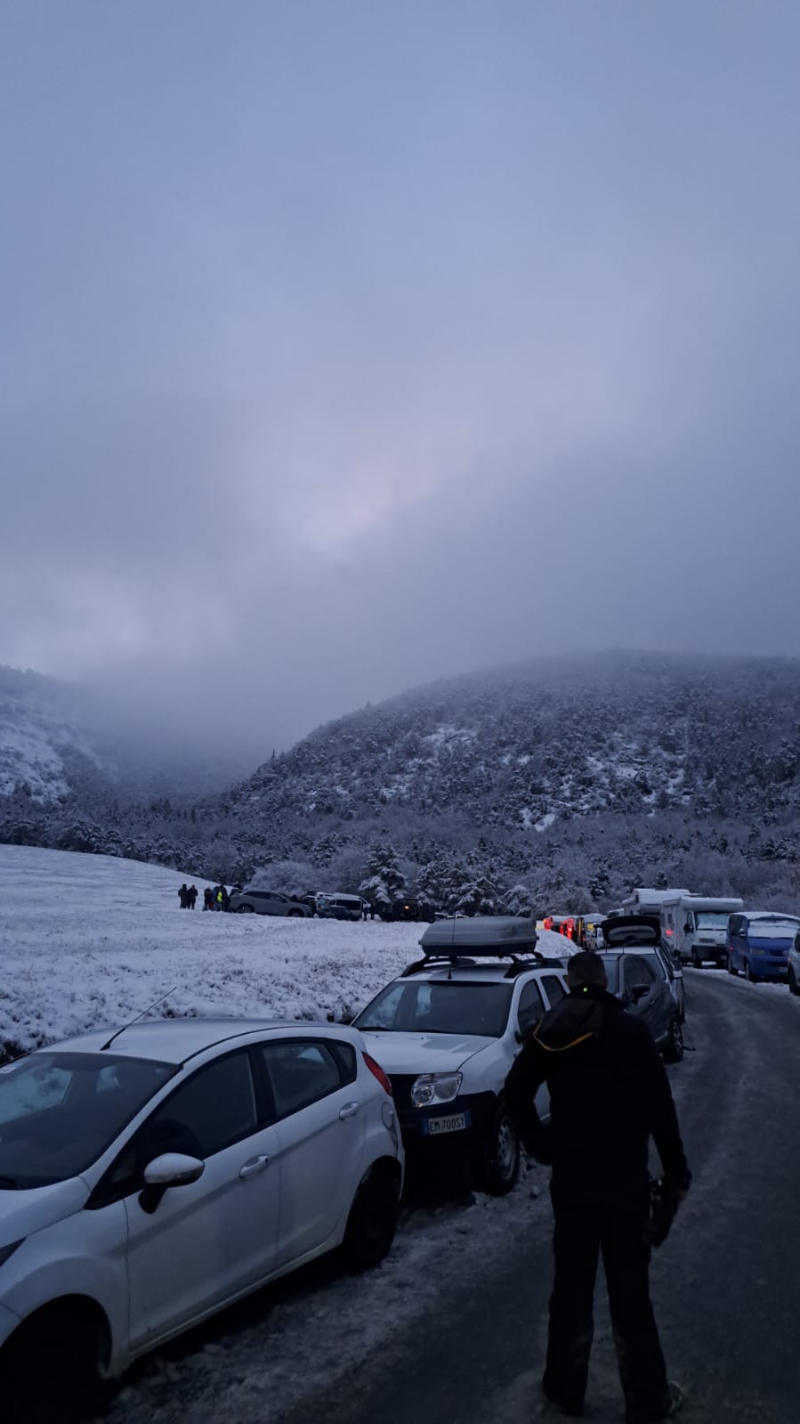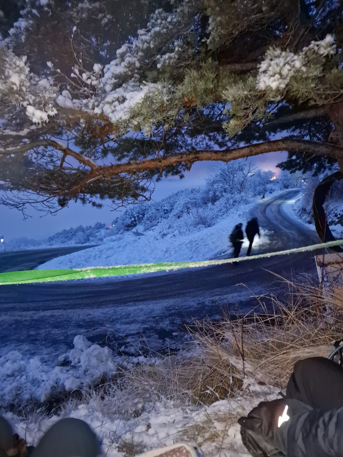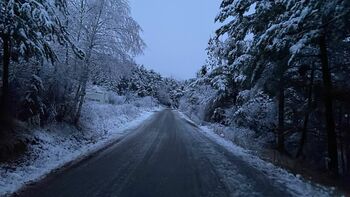 Km 2,1: ghiaccio / neve bagnata congelata sul ponte; da qui neve bagnata congelata sulla linea centrale in molte zone.