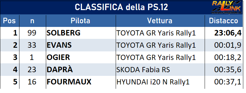 Con le temperature che si alzano e i concorrenti, transitati la prova si velocizza e la classifica di prova viene stravolta,a parte il vincitopre che rimane Oliver Solberg