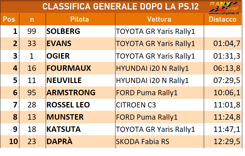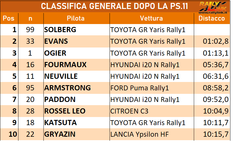 Mcerlean, Pajari, Katsuta, Munster, Paddon, Armstrong, Neuville, Fourmaux, Ogier, Evans e Solberg tutti intervallati da due minuti