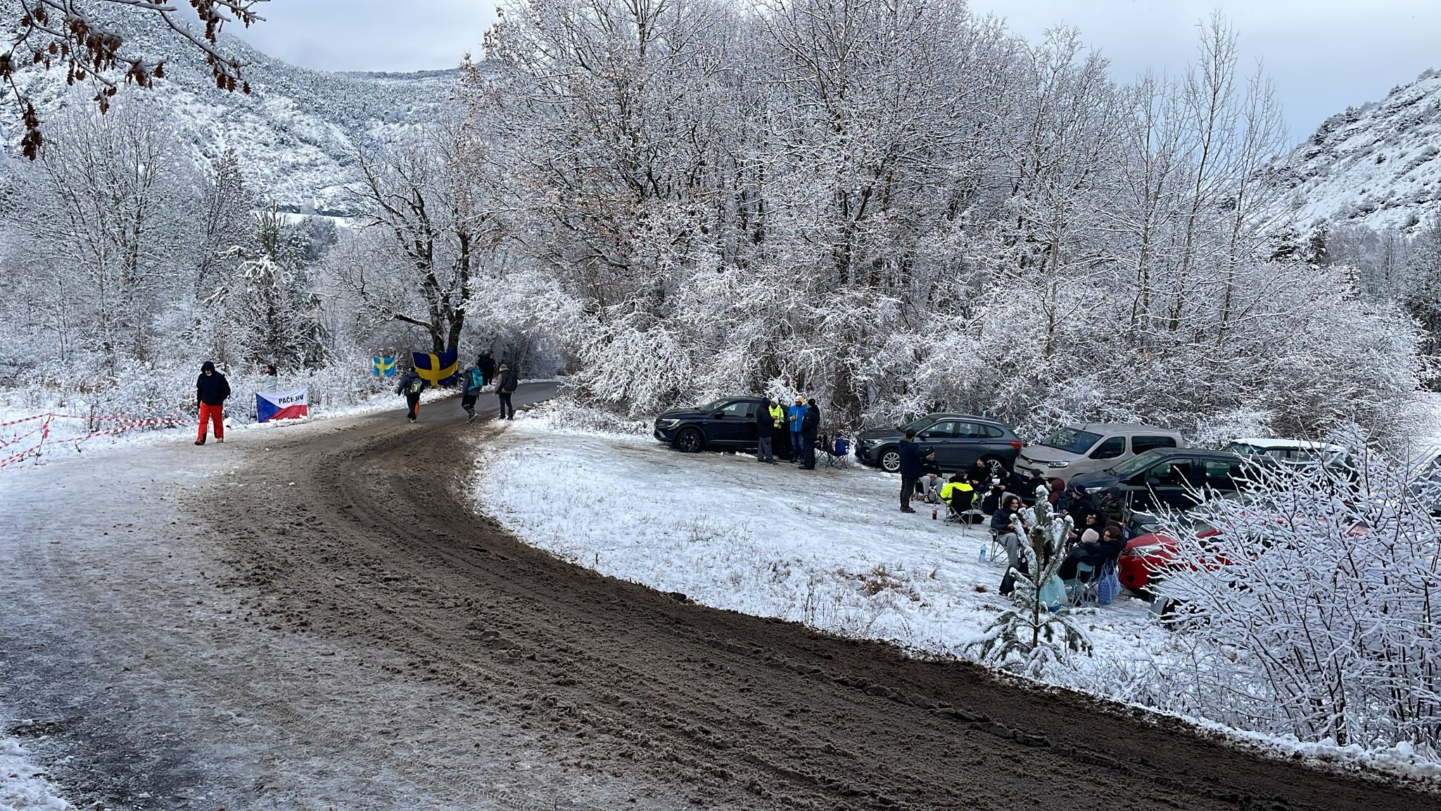 Km 20,2: dalla cima del Col de Garcinet la strada non è ancora stata sgomberata; ci si aspetta lo sgombero prima dello svolgimento della PS